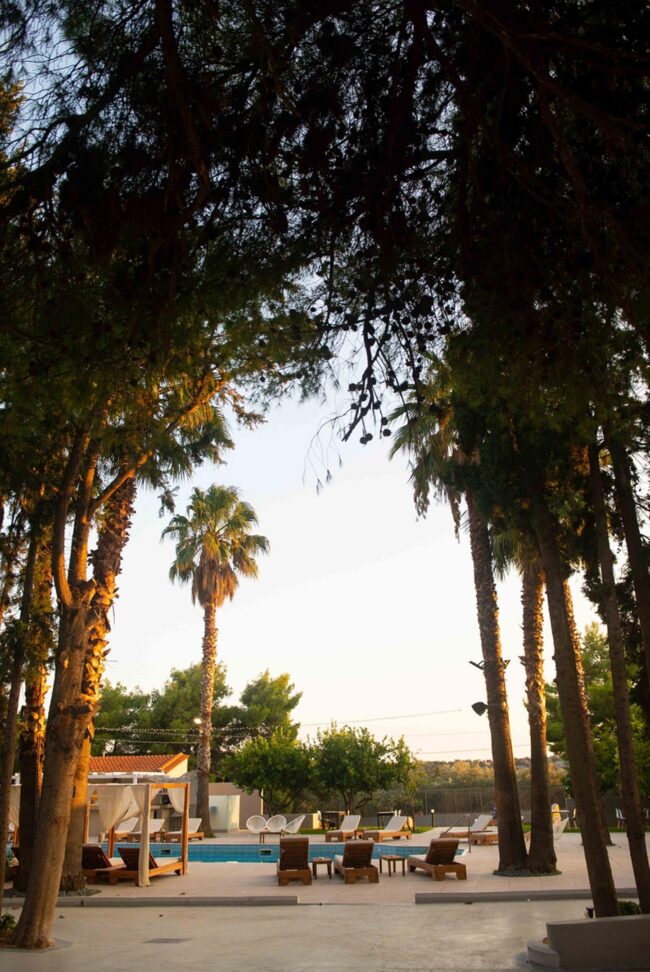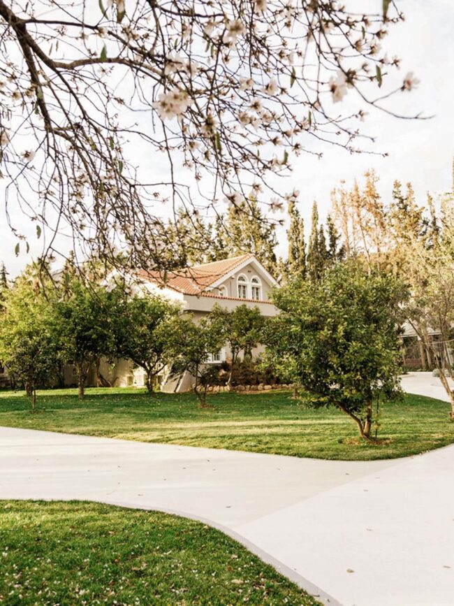 Στο πλαίσιο της παρέμβασης, σχεδιάστηκε εκ νέου η είσοδος του κτήματος, οργανώθηκαν οι υπαίθριες διαδρομές και αναδείχθηκαν οι υφιστάμενες φυτεύσεις, ενισχύοντας τη φυσική ομορφιά του χώρου. Παράλληλα, διαμορφώθηκε ειδικός χώρος για την τοποθέτηση μικρού προκατασκευασμένου παρεκκλησίου, ενώ η συνολική αναμόρφωση του τοπίου περιλάμβανε λεπτομερείς παρεμβάσεις που εξασφαλίζουν λειτουργικότητα, αισθητική συνοχή και μια μοναδική εμπειρία για τους επισκέπτες.
