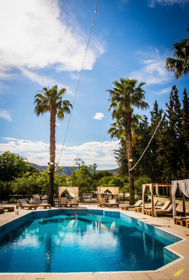 Το έργο αφορά τη διαμόρφωση κτήματος 11.000 m², το οποίο περιλάμβανει υφιστάμενη κατοικία με πισίνα, σε έναν ολοκληρωμένο χώρο εκδηλώσεων υψηλής αισθητικής. Βασικός στόχος του σχεδιασμού ήταν η ανάδειξη του έντονου φυσικού στοιχείου του περιβάλλοντος χώρου, δημιουργώντας έναν χώρο φιλόξενο και αρμονικά ενταγμένο στο περιβάλλον του.
