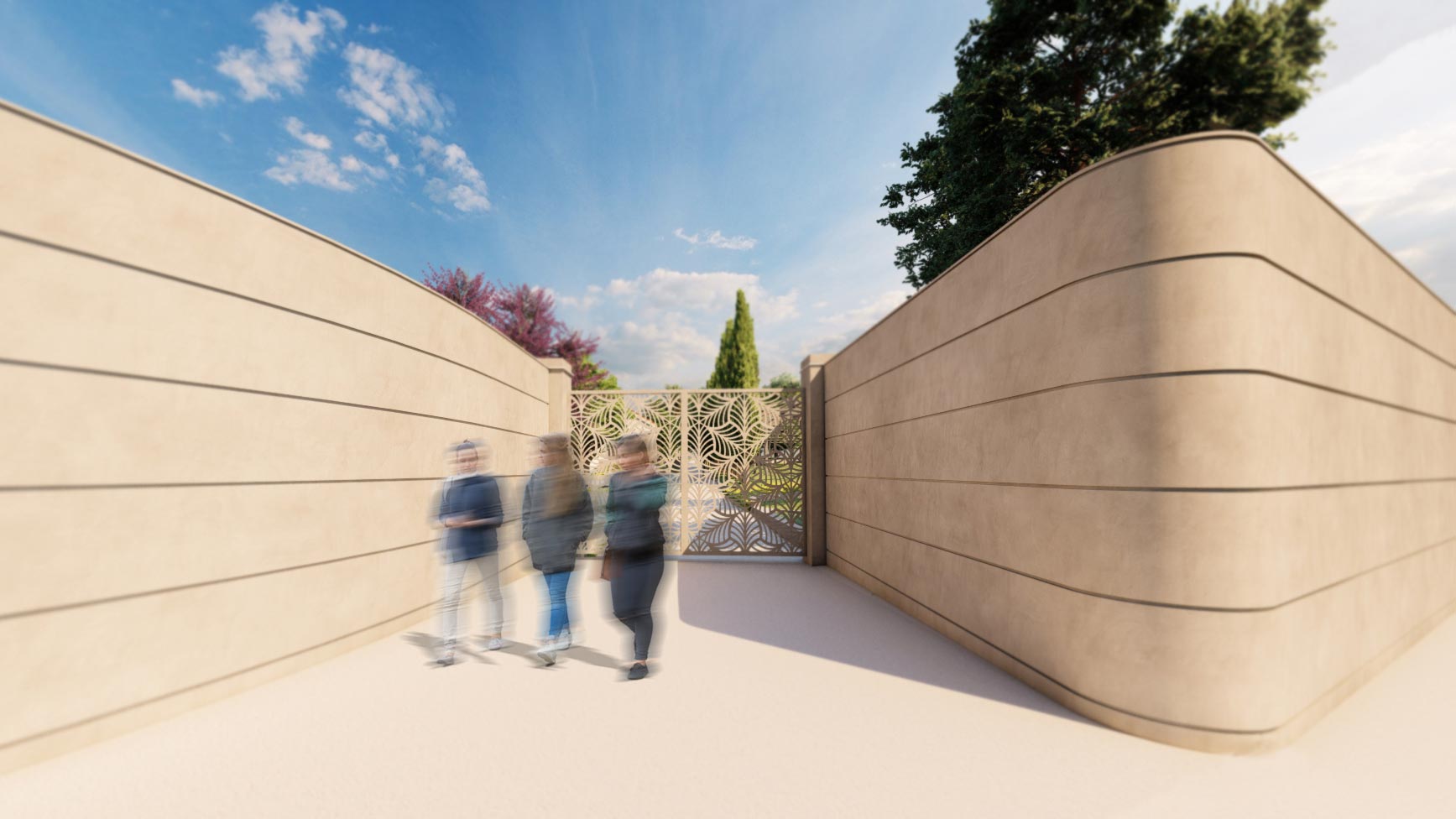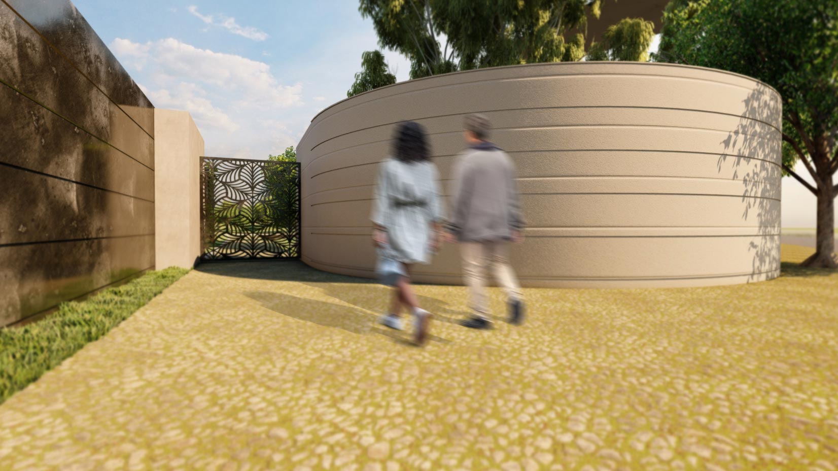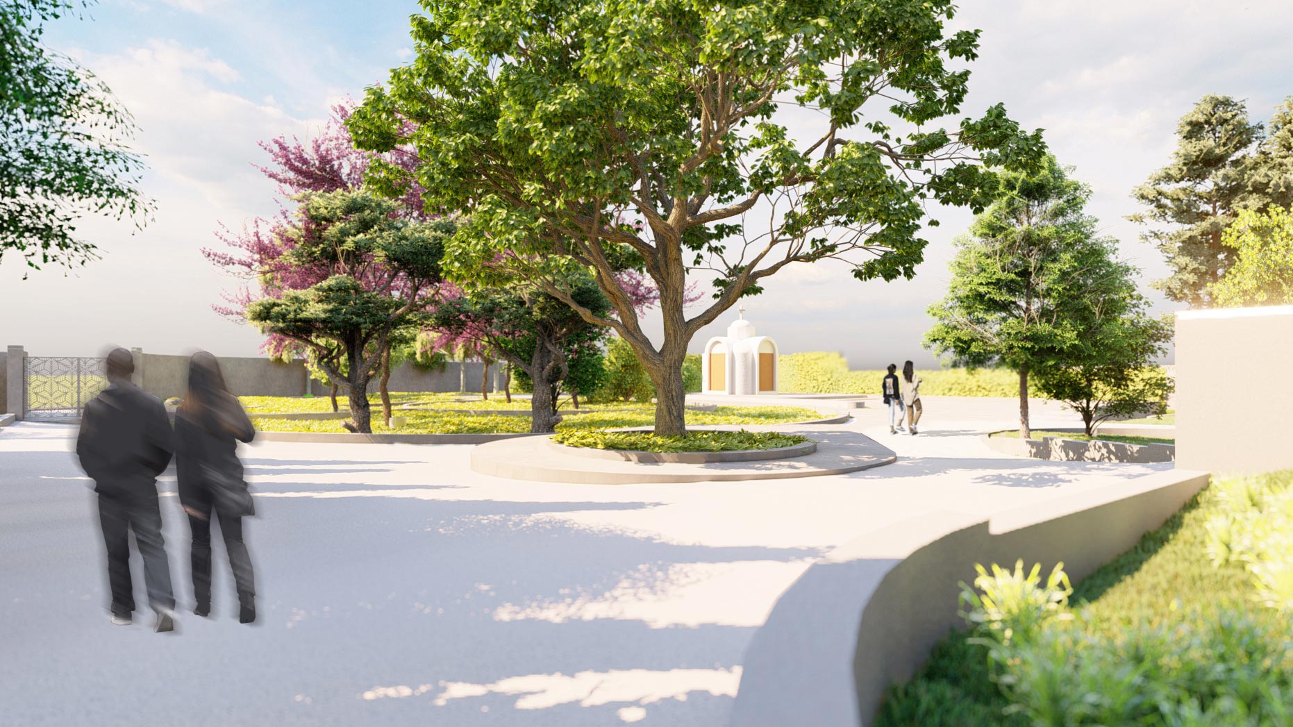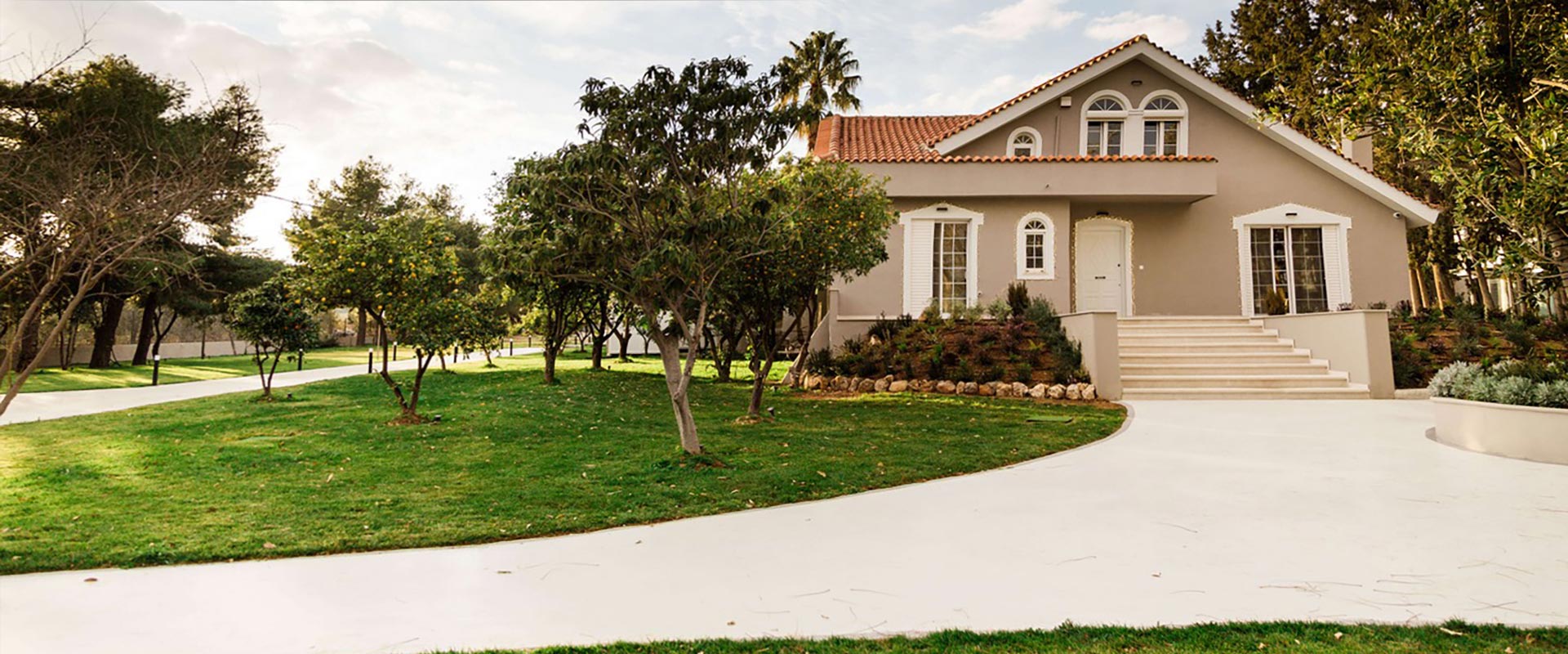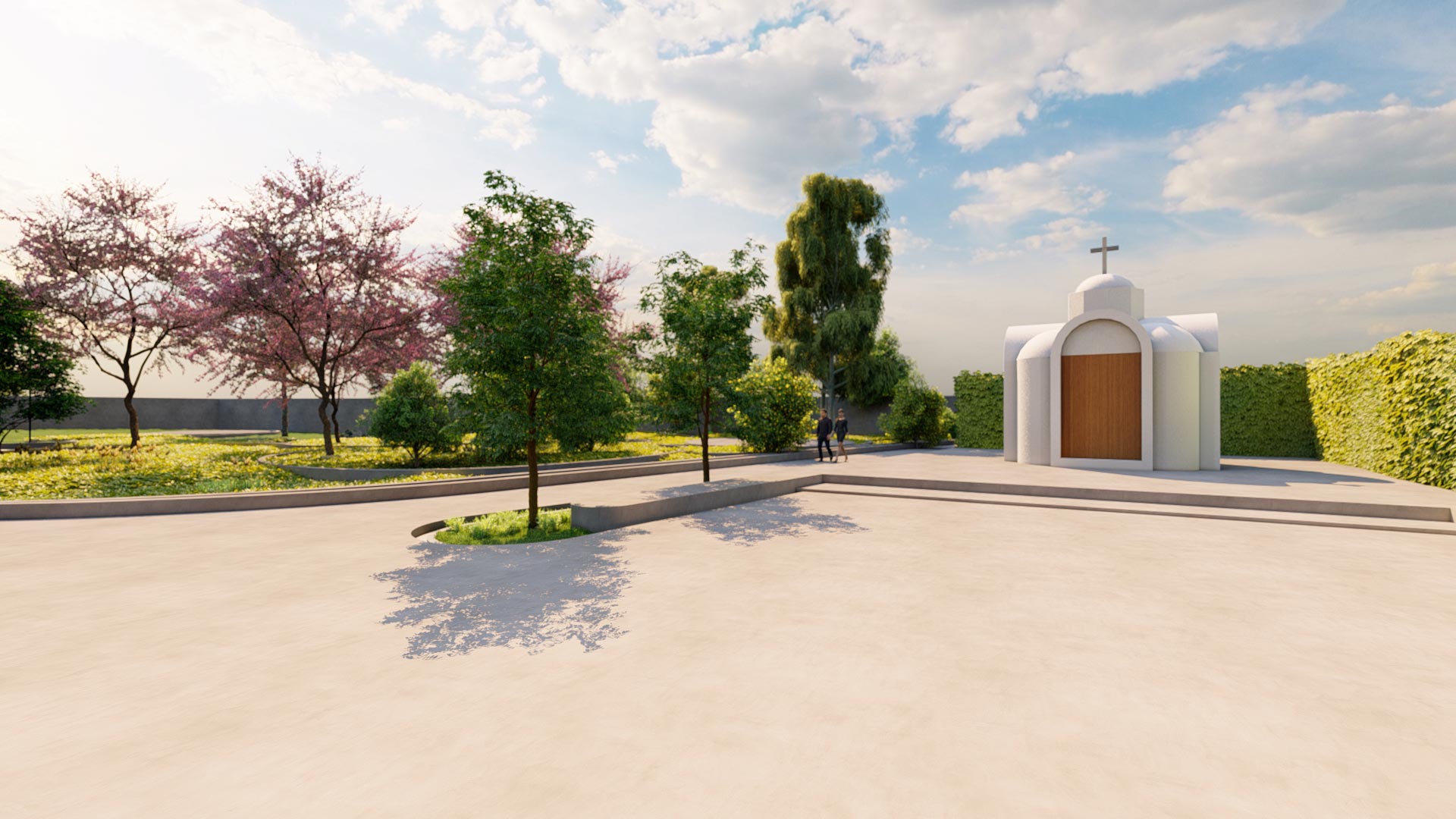 Στο πλαίσιο της παρέμβασης, σχεδιάστηκε εκ νέου η είσοδος του κτήματος, οργανώθηκαν οι υπαίθριες διαδρομές και αναδείχθηκαν οι υφιστάμενες φυτεύσεις, ενισχύοντας τη φυσική ομορφιά του χώρου. Παράλληλα, διαμορφώθηκε ειδικός χώρος για την τοποθέτηση μικρού προκατασκευασμένου παρεκκλησίου, ενώ η συνολική αναμόρφωση του τοπίου περιλάμβανε λεπτομερείς παρεμβάσεις που εξασφαλίζουν λειτουργικότητα, αισθητική συνοχή και μια μοναδική εμπειρία για τους επισκέπτες.