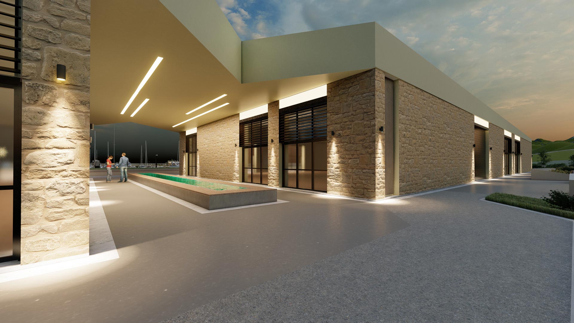 Η αρχιτεκτονική του έργου συνδυάζει με εξαιρετική αρμονία τη σύγχρονη αισθητική με παραδοσιακά στοιχεία, όπως η λιθοδομή και το ξύλο, δημιουργώντας έναν μοναδικό χαρακτήρα που αναδεικνύει την τοπική παράδοση και ταυτόχρονα ανταποκρίνεται στις ανάγκες του σύγχρονου τουριστικού τομέα. Η μαρίνα ενσωματώνεται με σεβασμό στο τοπίο και τον περιβάλλοντα χώρο, διατηρώντας την αυθεντικότητα της πόλης, ενώ ταυτόχρονα προάγει τη σύγχρονη τουριστική εμπειρία.