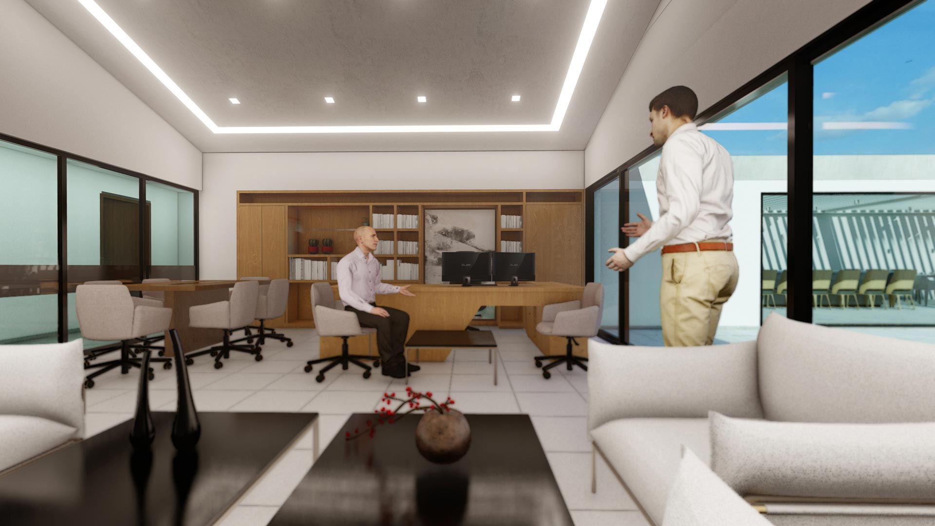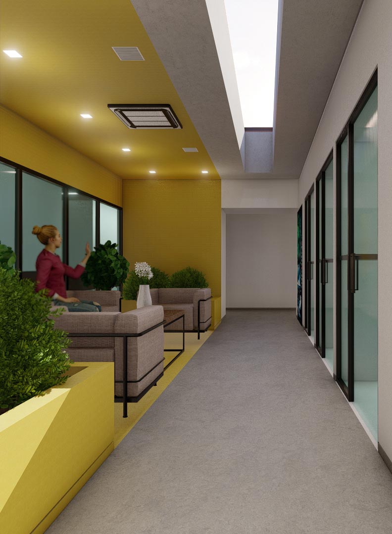 Ο όροφος του κτιρίου πλαισιώνεται με διευθυντικά γραφεία, ενώ ο κάτω όροφος στεγάζει τα γραφεία του προσωπικού. Το δώμα του κτιρίου είναι βατό και μετατρέπεται σε εξωτερικό καθιστικό και κουζίνα, τα οποία μπορούν να φιλοξενήσουν τη διεξαγωγή εκδηλώσεων και meetings.