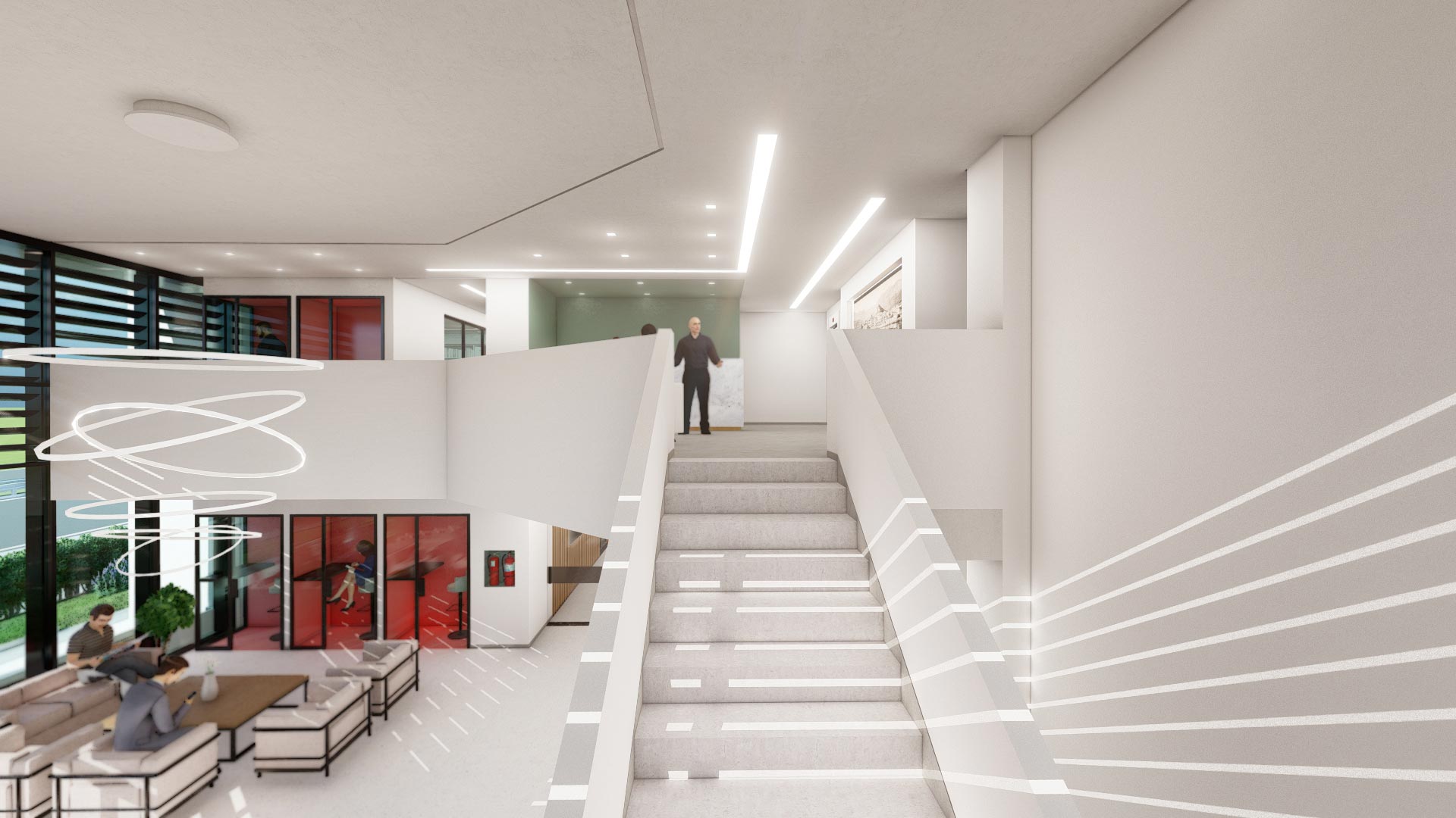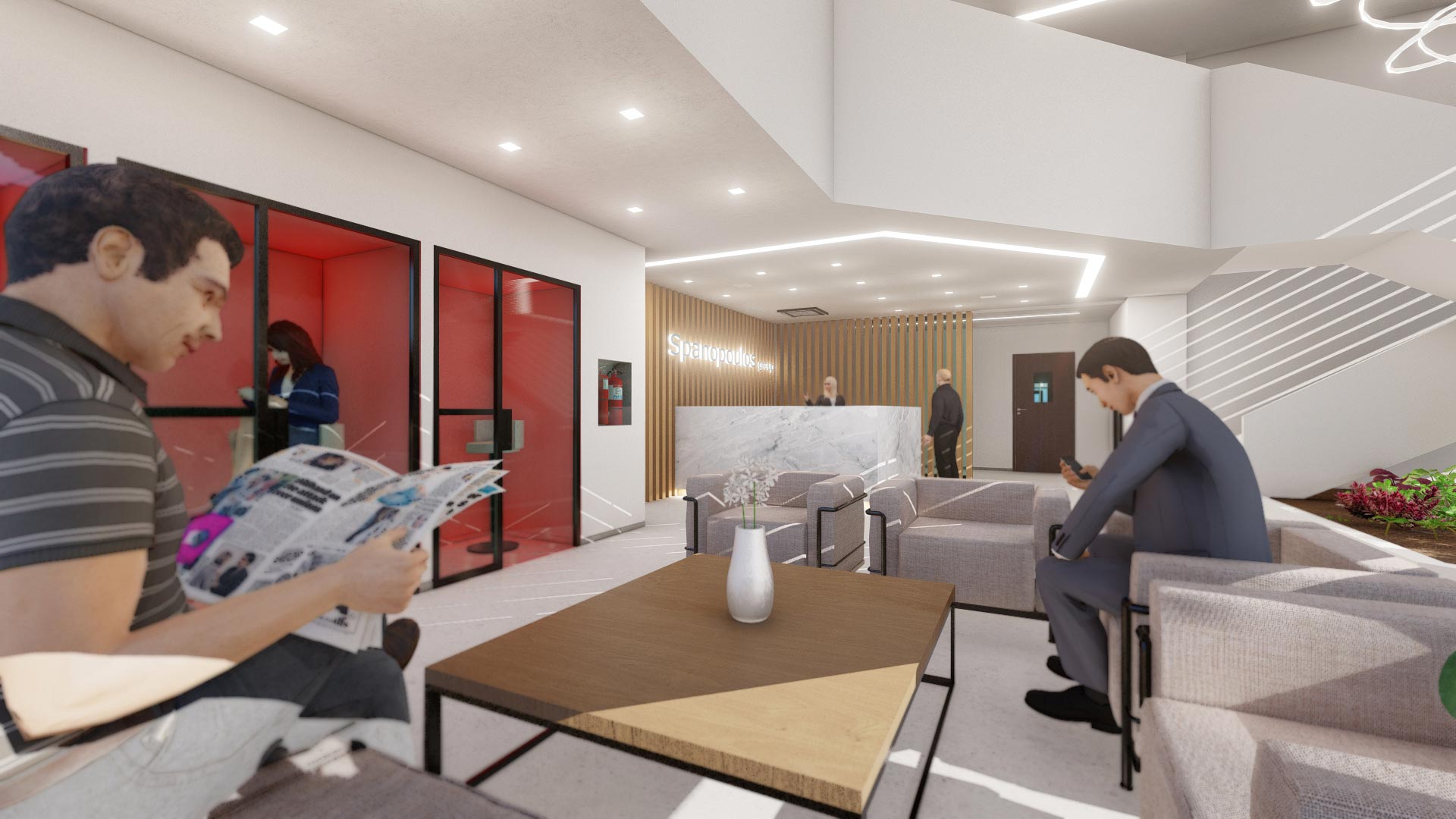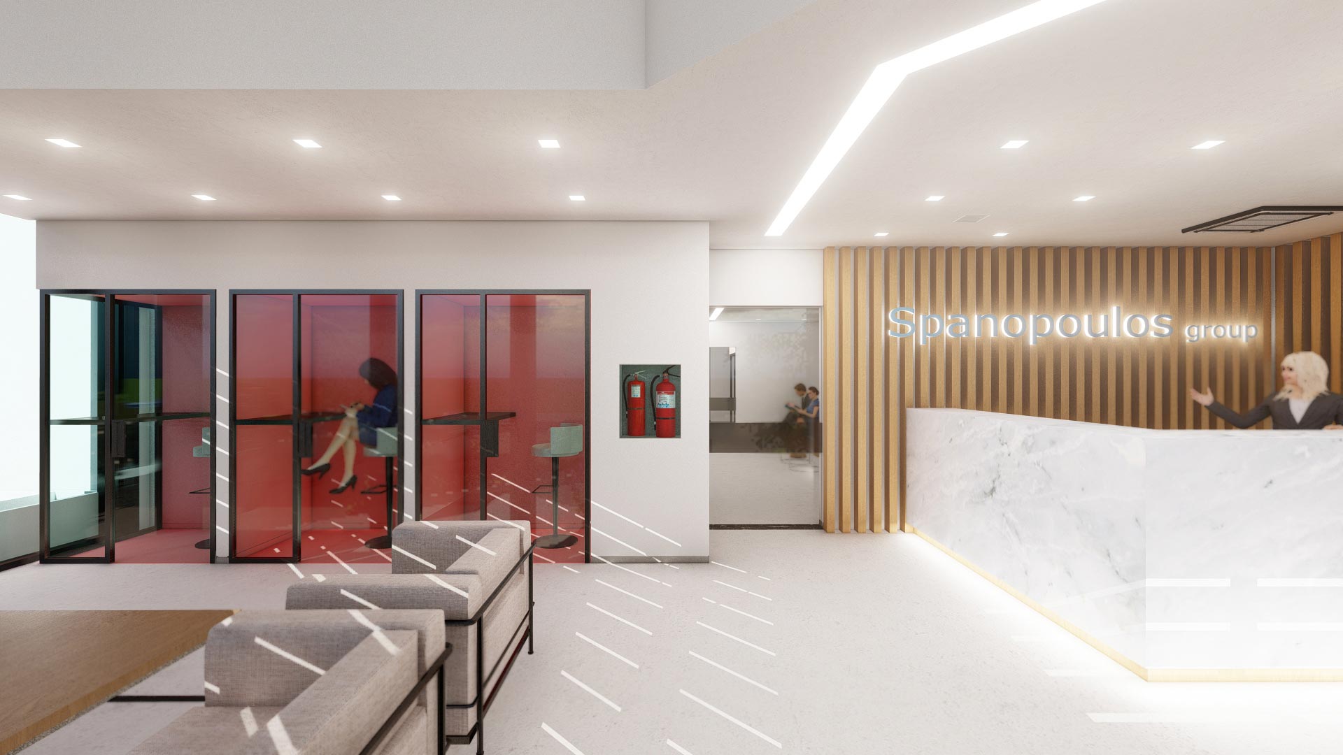 Η βασική αρχή του σχεδιασμού είναι η διατήρηση του σύγχρονου και minimal χαρακτήρα, με έμφαση στις καθαρές γραμμές και την απλότητα. Στο κτίριο έχουν δημιουργηθεί δύο χώροι υποδοχής (ένας ανά όροφο), ενώ για την προστασία της ιδιωτικότητας, έχουν τοποθετηθεί οκτώ phone booths διάσπαρτα στην εγκατάσταση, προσφέροντας στους εργαζόμενους και τους επισκέπτες τον χώρο να εργαστούν ή να πραγματοποιήσουν προσωπικές συζητήσεις απομονωμένοι.
